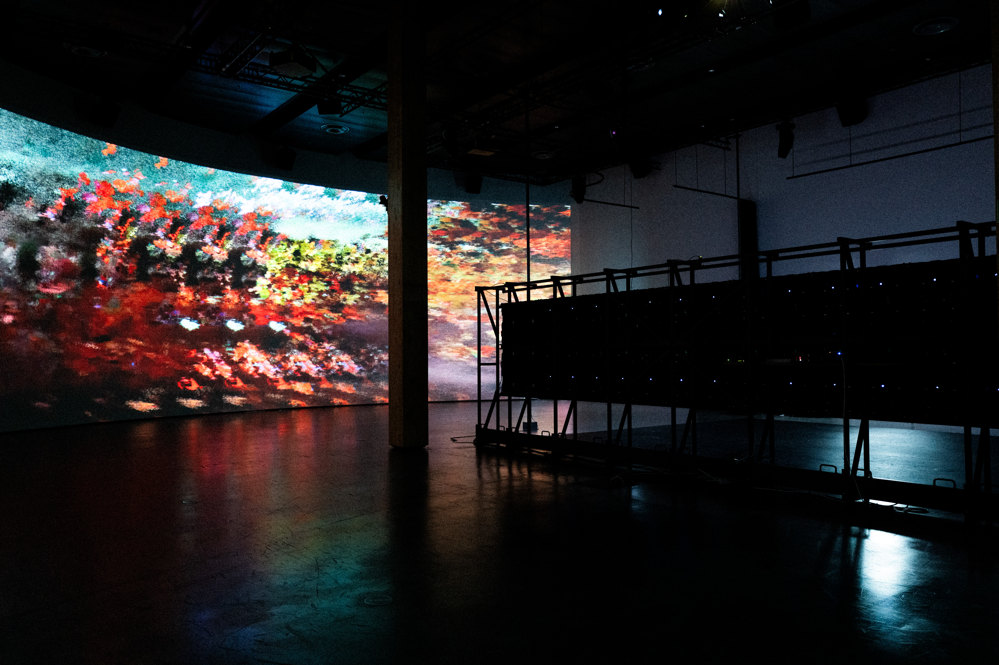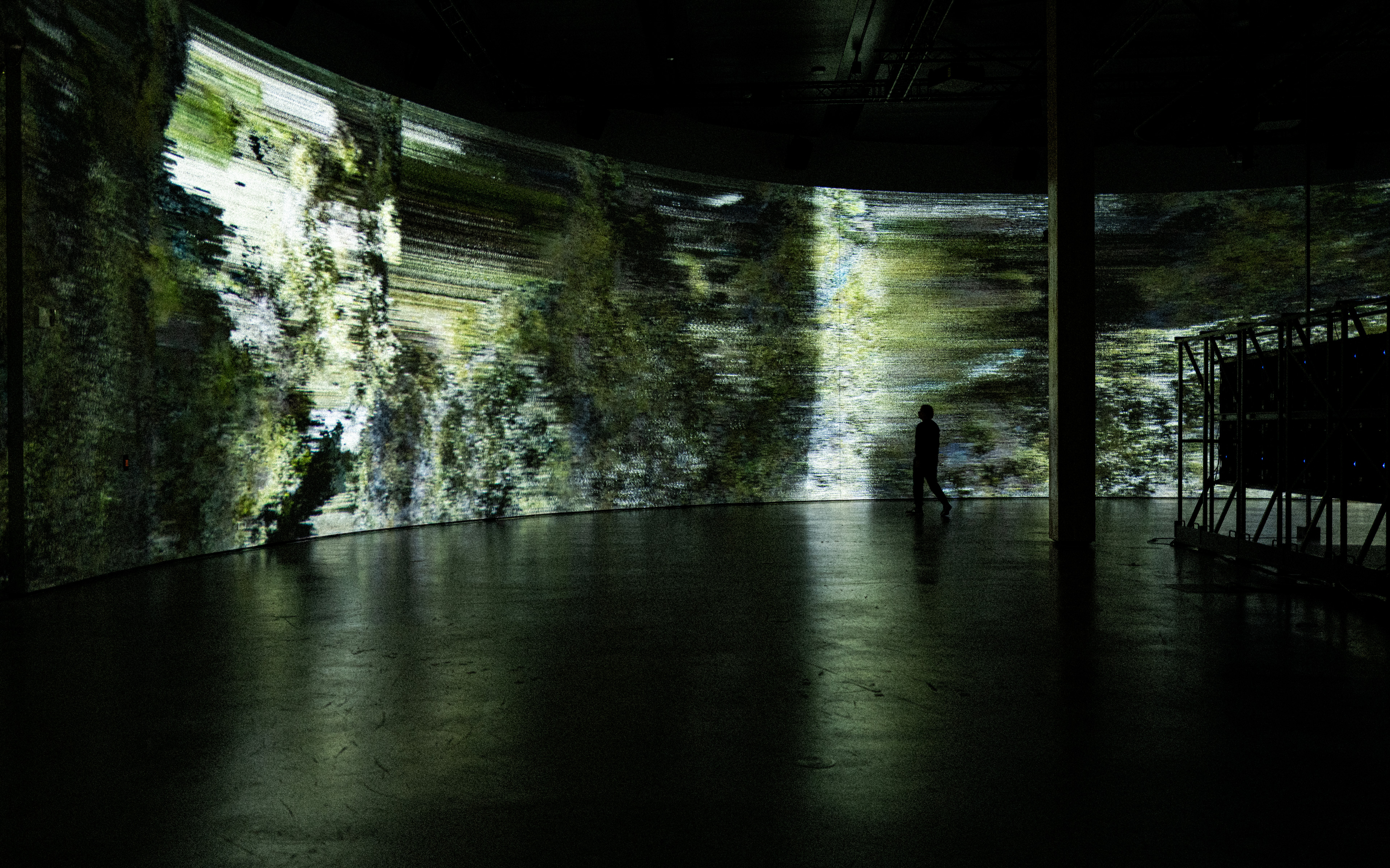 The work generates a constantly evolving landscape based on pre-captured environmental photogrammetry data. The system continuously samples elements from multiple datasets and injects them into the sequence, creating an evolving landscape in motion.
