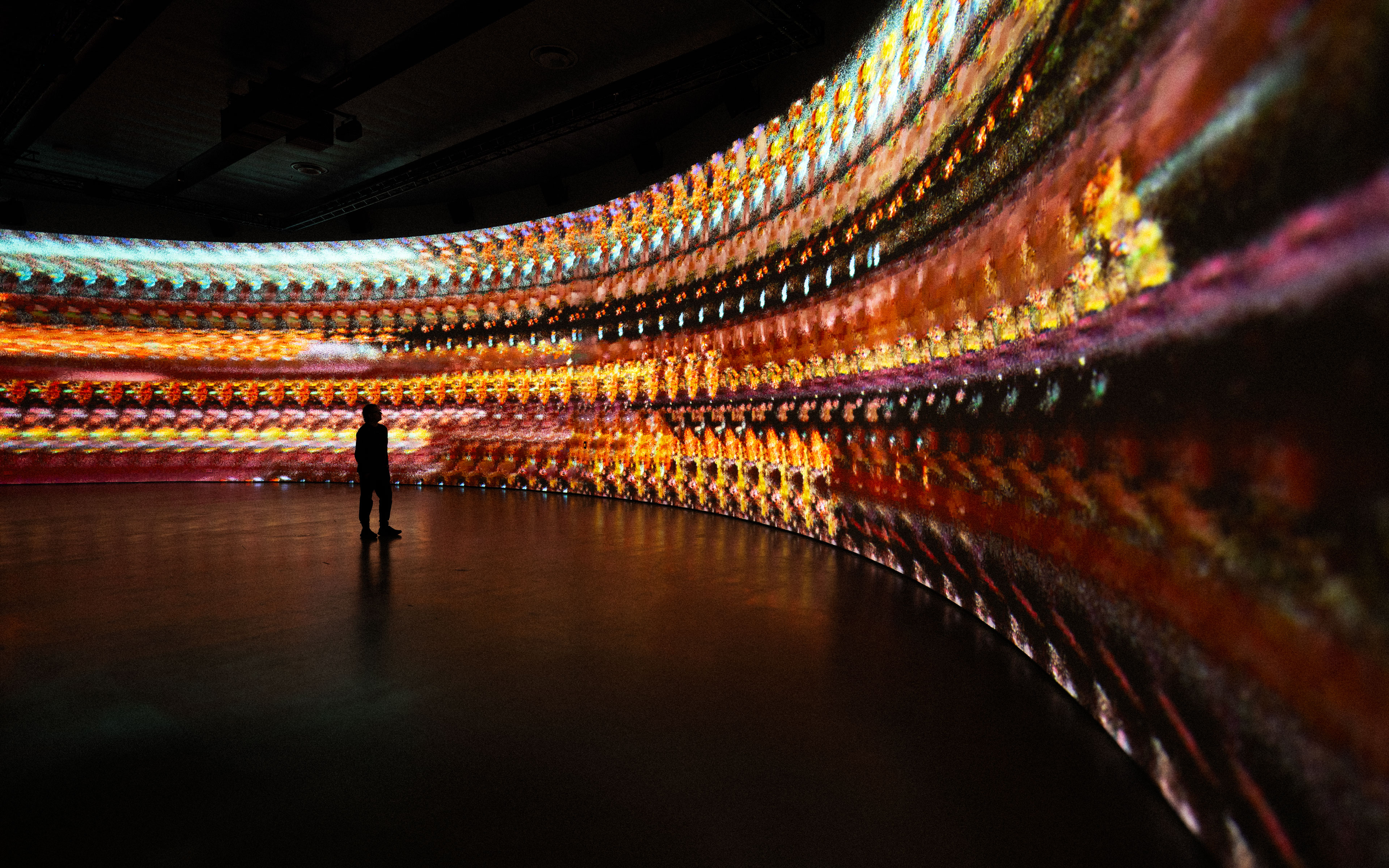 As visitors enter and move through the space, their proximity and motion causes fluid disturbances that interrupt and affect the landscape. Constructive interference between multiple viewers creates unexpected compositions with complexity far beyond the initial dataset.